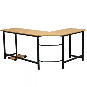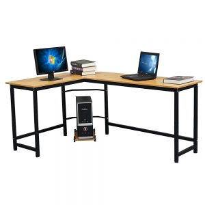 If you are looking for a desk for your office, this L-Shaped Desktop Computer Desk might be a good choice for you. It’s made of high quality MDF and iron, which is sturdy, stable and durable. Its design of 90° L-shaped is more spacious than normal design, and you can get rid of the narrow space. And also it uses bevel edge angle design and M-style buckle design, which is easier to assemble. In addition, its design of humanized foot position, adjustable leg pads and safety corner is convenient and safe for you. So don’t hesitate, just take it home!