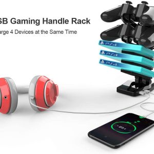 【USB Handle Rack Charging Device 】 – 4 Ports Smart USB gaming handle rack charger. Each USB port allow you to charge your phone, Pad, tablet or other smart device without plug in wall, handy and keep your desk organized.