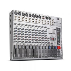 Ultra thin design, 12 channels, channel three balanced, a group of auxiliary send a group, send, built-in digital effects, 60mm precision sliding potentiometer.